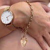 Stainless steel bracelet featuring an engraved heart tag.